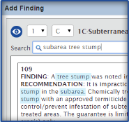 Simply start typing your keywords to bring up your finding codes, termite reports, and contacts instantly. Find exactly what you are looking for among thousands of records with just a few keywords.
